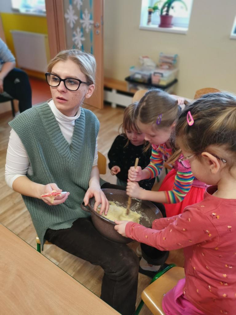 Masopustní pečení koblížků ve školce s Vendulkou.